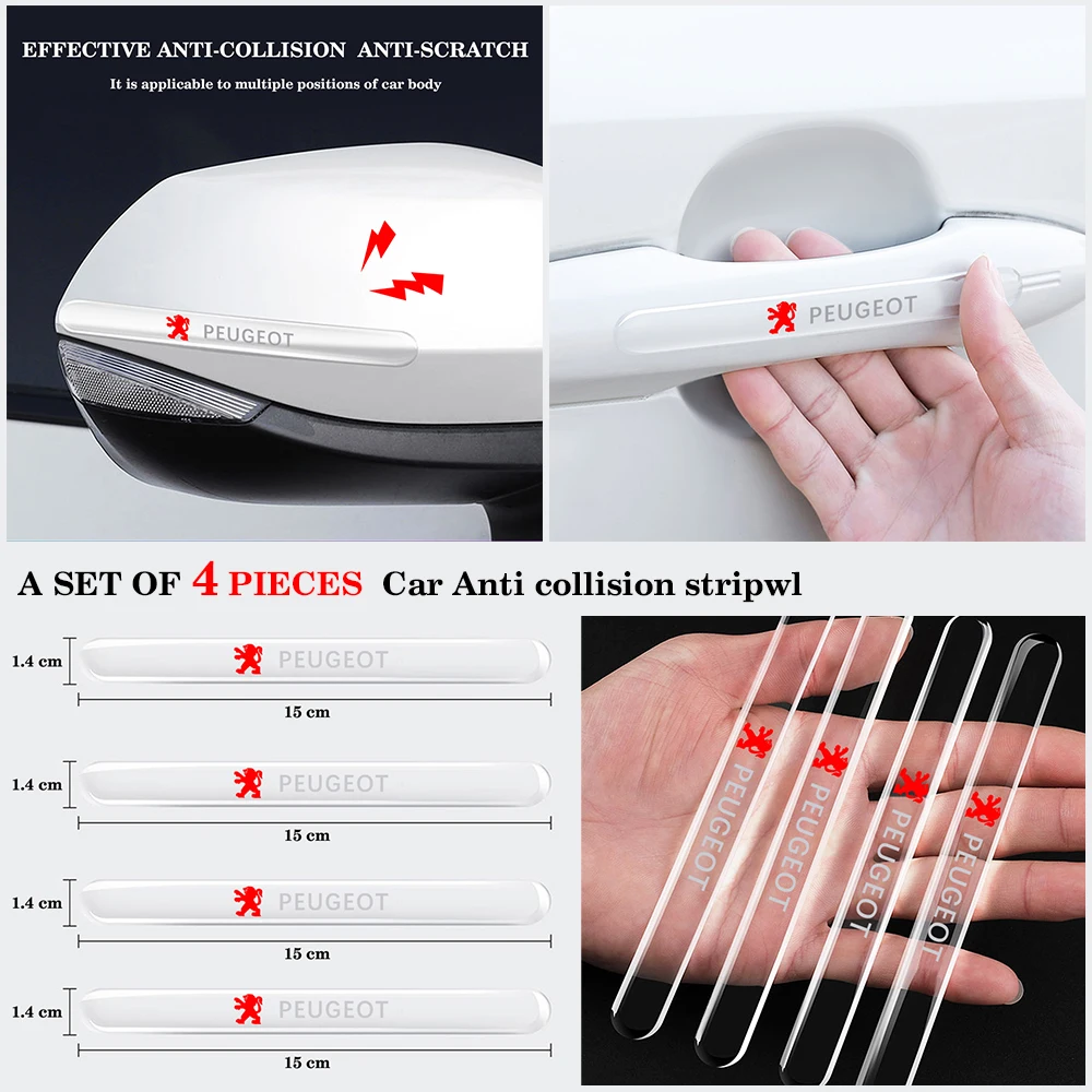 4 шт., автомобильные наклейки на дверь, противоударные прозрачные боковые края, защита для Peugeot 206 308 307 207 208 3008 407 508 RCZ