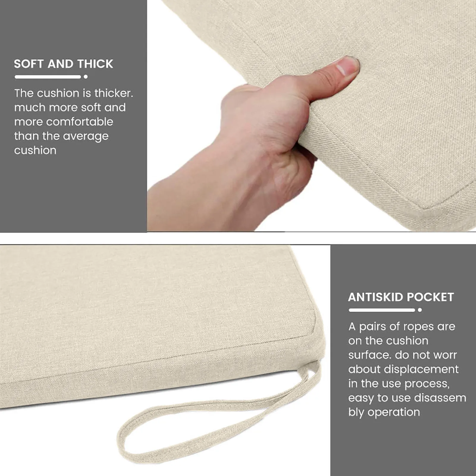 TypeGarden Bench Cushion 2-3 Seater No-Slip Seat Pad for Patio/Sofa/