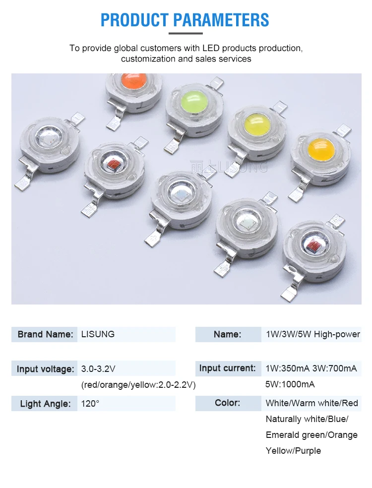Светодиодный чип-светильник высокой мощности, 1 Вт, 3 Вт, 5 Вт, 3 в, 4000 к, 7000 к, теплый белый, синий, зеленый, красный, желтый, оранжевый, УФ, светодиодный диодный светильник Smd