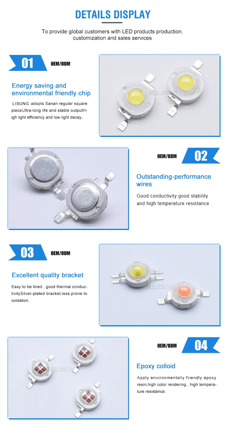 Высокая Мощность 1 Вт 3 Вт 5 Вт светодиодный чип бусины 3v 4000 к 7...