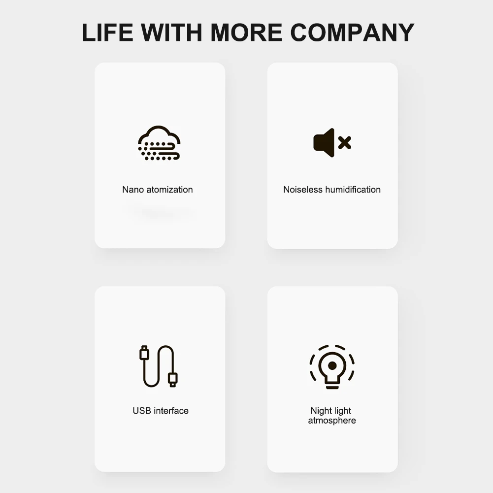 Мини-увлажнитель воздуха настольный с питанием от USB и ночником, 300 мл