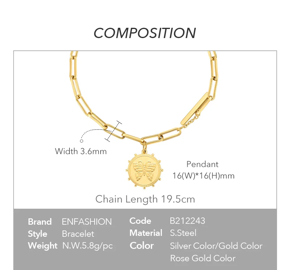Женский браслет с бабочками ENFASHION, браслет золотого цвета из нержавеющей стали, модель 2021, модные ювелирные украшения B212243