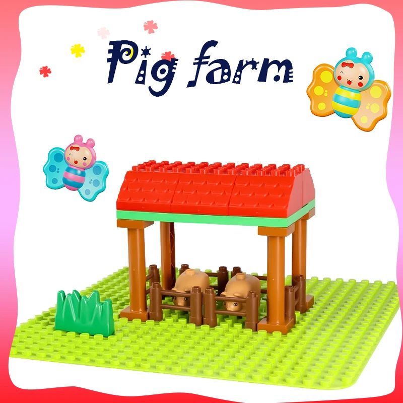Сельская ферма, строительные блоки, модель сделай сам, животные, свинки, лошади, бабочки, прицеп, пластина, аксессуары, кирпичи, сборные игрушки для детей