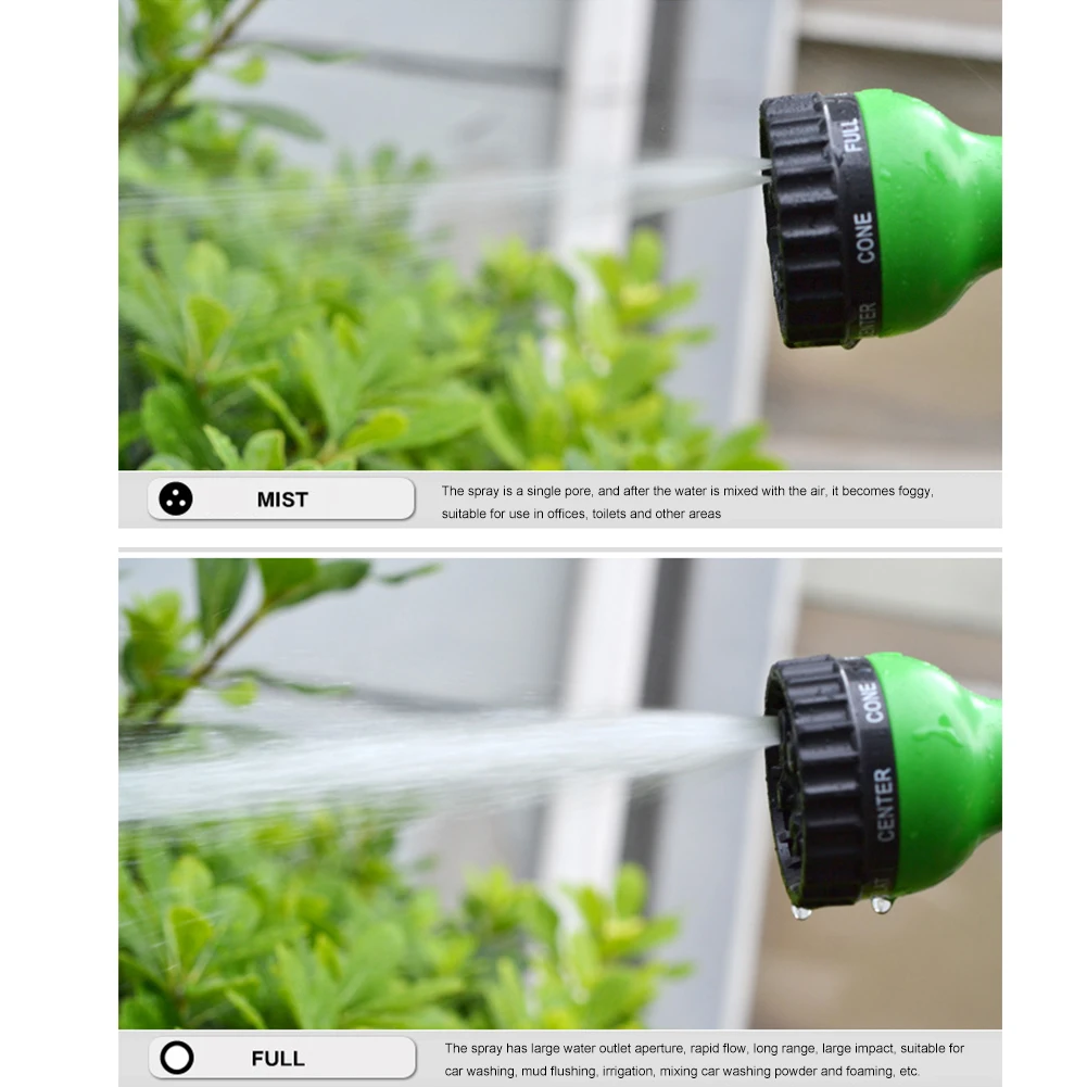 3. Поверните головку водяного пистолета для регулировки 7 видов распыления воды: струя, душ, плоский, Конусный, полный, туман, центр.
