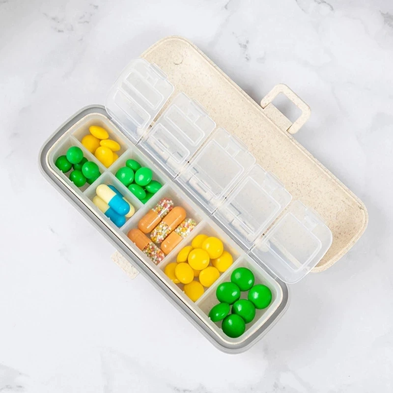 Описание:Портативный 7 сеток, пшеничная солома, коробка для таблеток, медицина, держатель для планшета, чехол, двухслойный контейнер, Диспенсер, органайзер для хранения лекарств