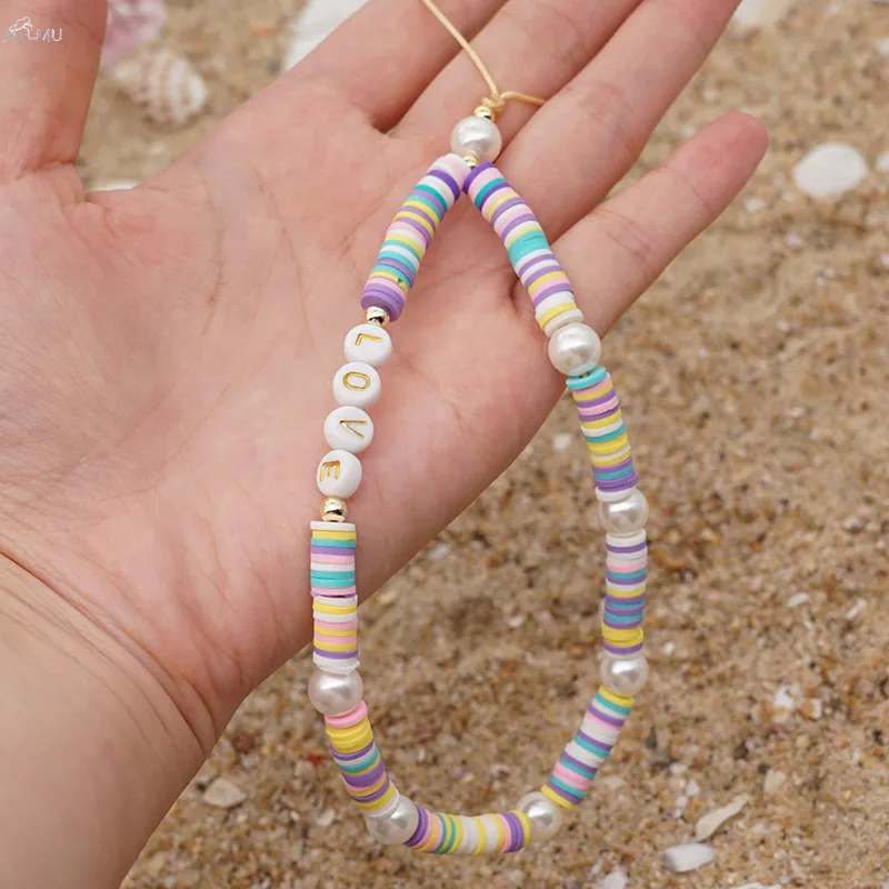 Простой богемный жемчуг AOMU с надписью LOVE, бусинами, искусственный шнурок, красочная мягкая керамическая искусственная цепь, Женские Ювелирные изделия, подарки