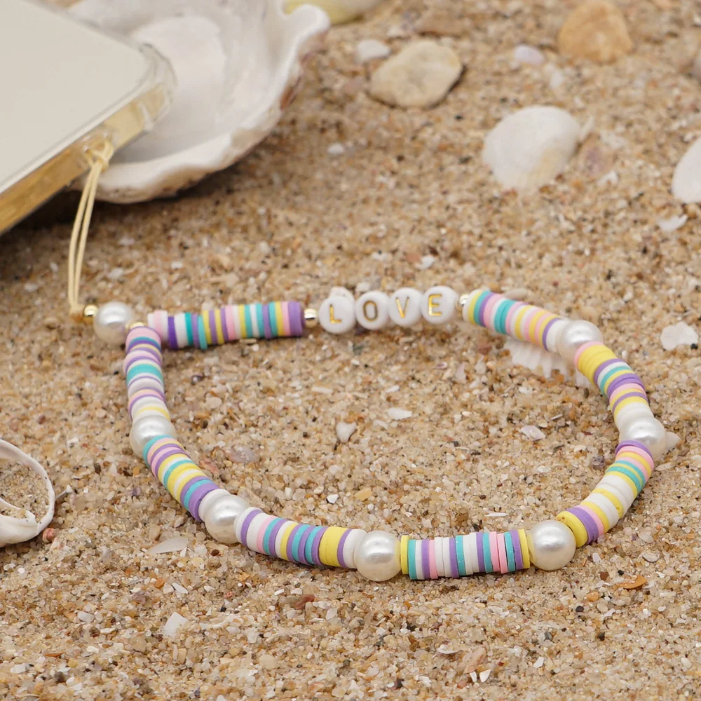 Цепочка для мобильных телефонов, с бусинами и буквами, чехол для те...