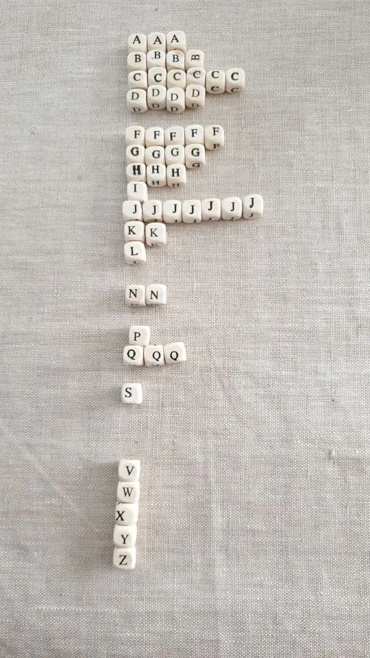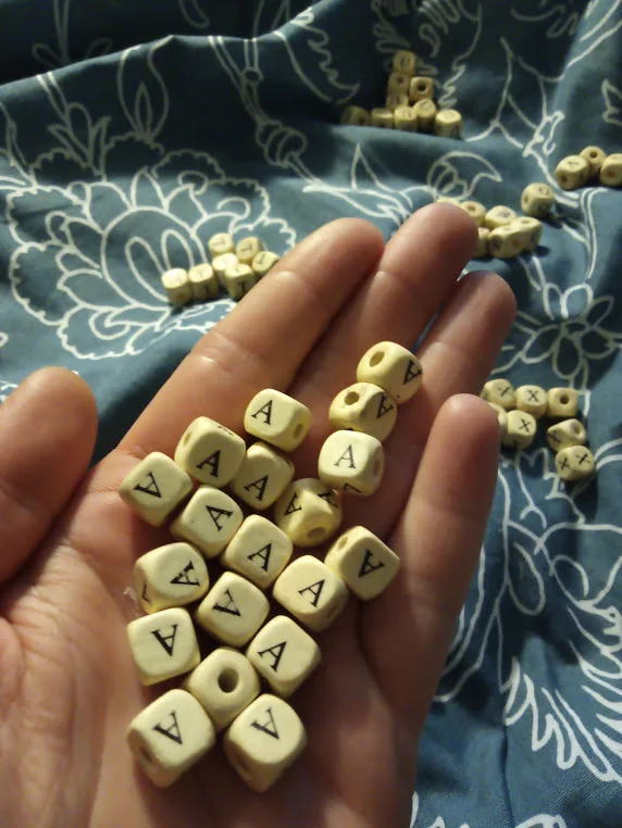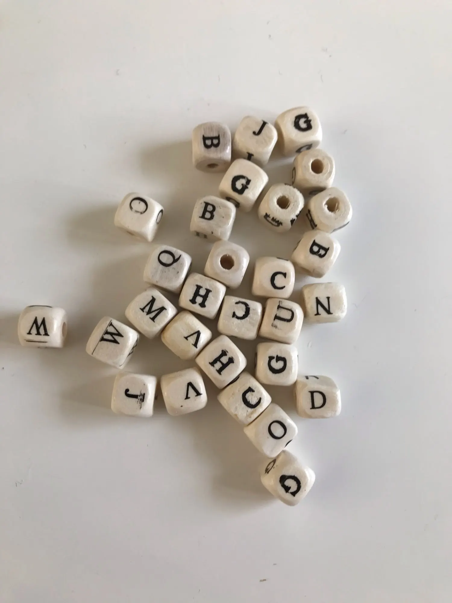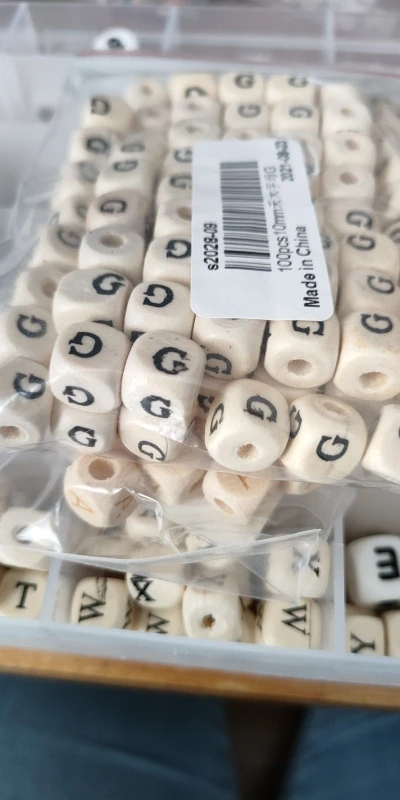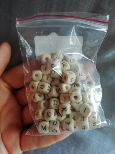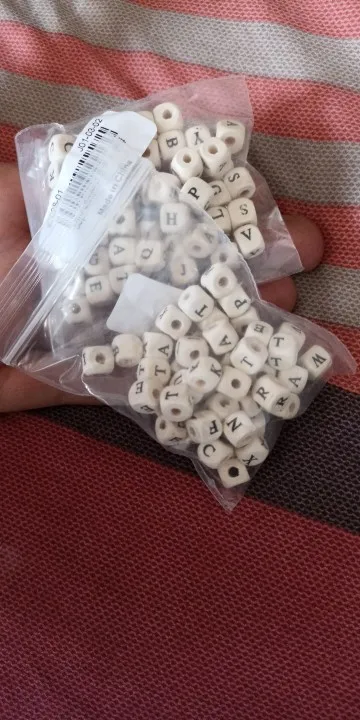 К сожалению, вы не можете использовать буквы, потому что они неправильные или нечистые были напечатаны. У всех разные формы, цвета и размеры, качество не является достаточным. Я бы не хотел, чтобы эти бусы снова были в заказе этого магазина...