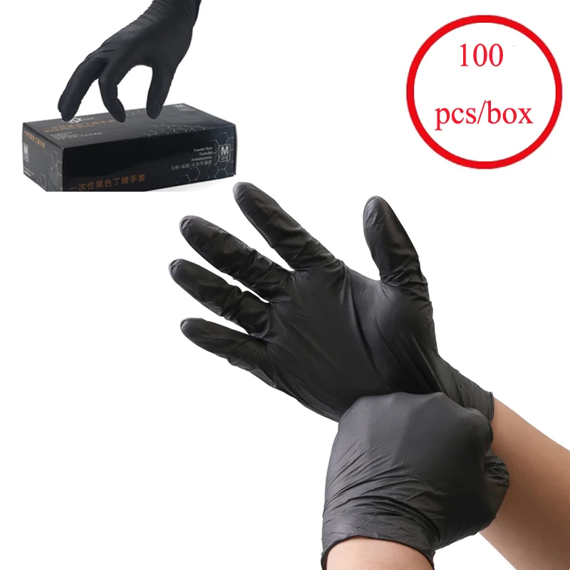 100 шт черный латексные одноразовые нитриловые перчатки рабочие пер...