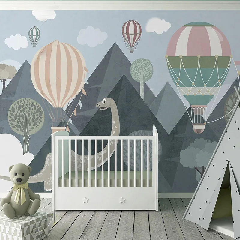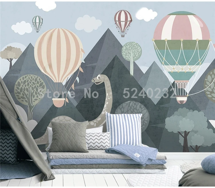 Пользовательские 3D обои мода динозавр горный лес водородный шар милый мультфильм детская комната фон настенная бумага