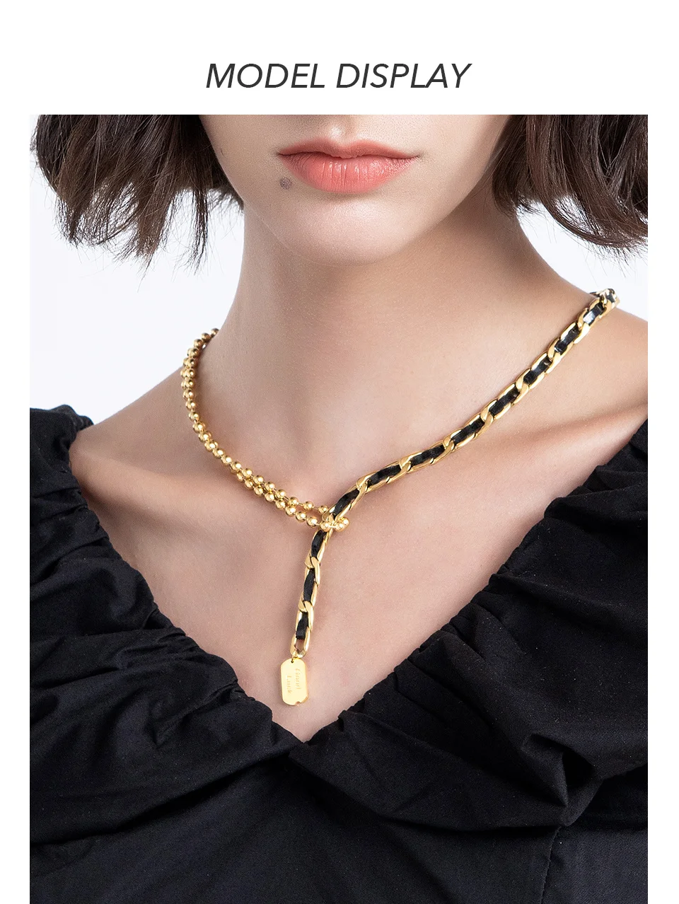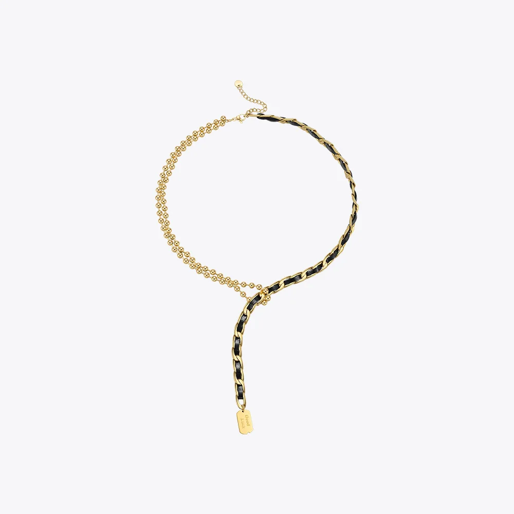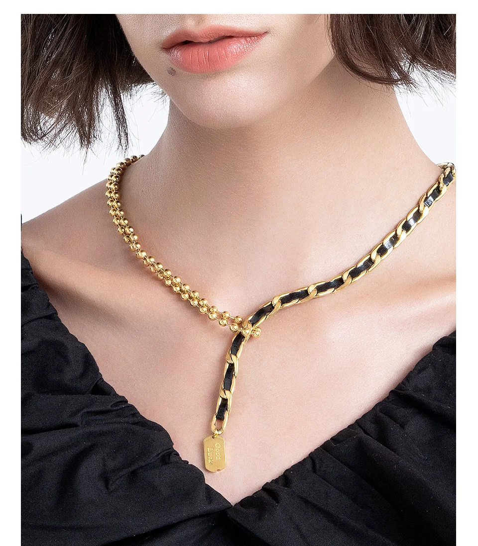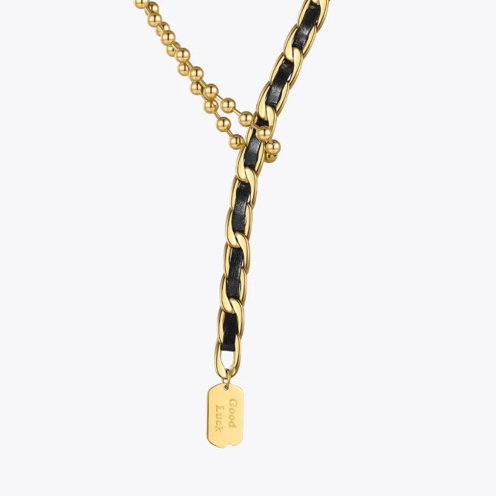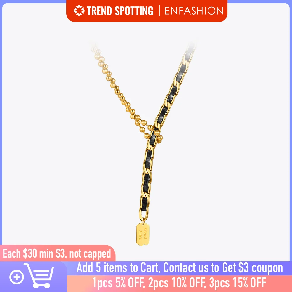 Женское кожаное ожерелье с бусинами ENFASHION, колье золотого цвета из нержавеющей стали, модель 2021 P213220