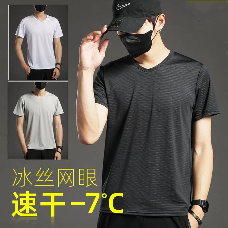 Мужская летняя футболка из ледяного шелка, с коротким рукавом, дыша...