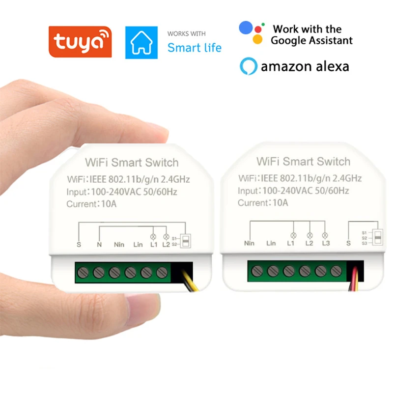 Умный выключатель Tuya с Wi-Fi, 2 клавиши, 3 клавиши, 10 А, дистанционное управление через приложение, совместим с Alexa Google Home Automation