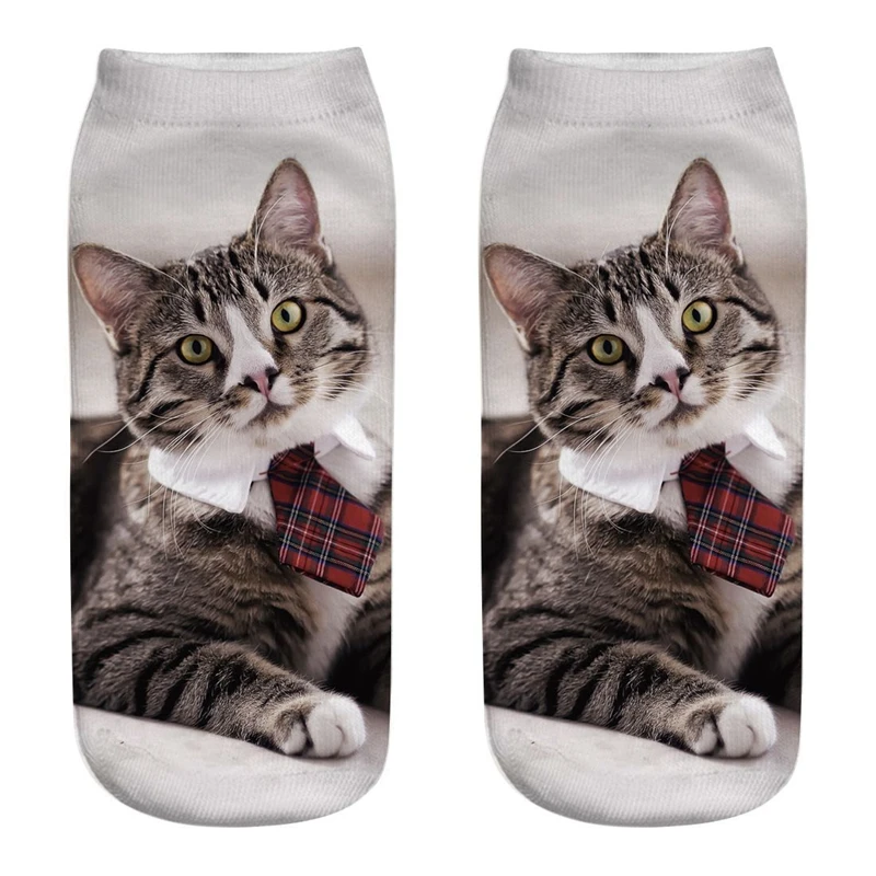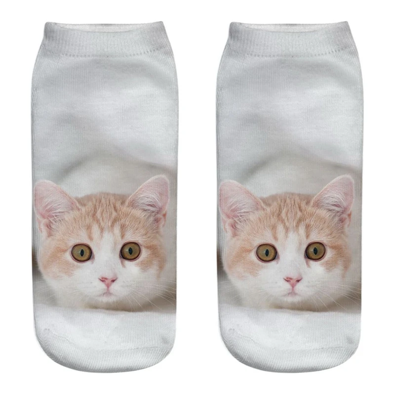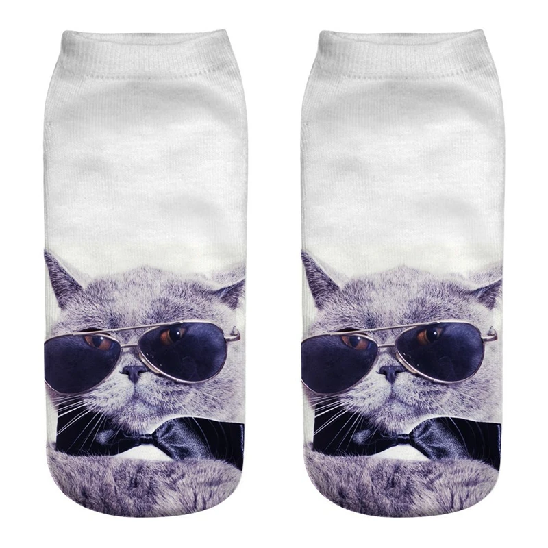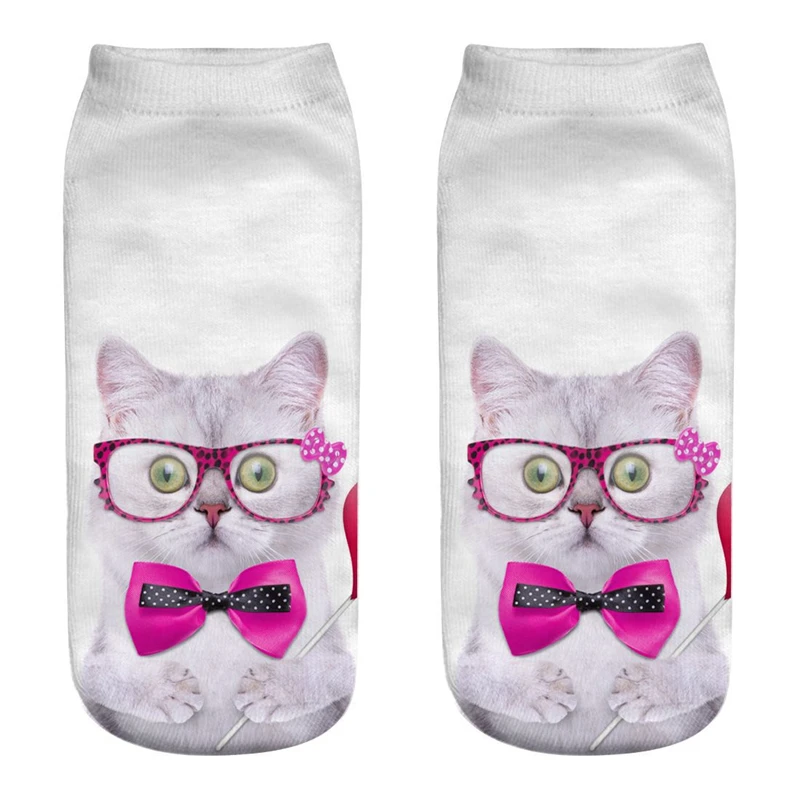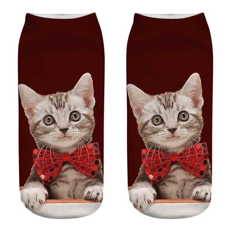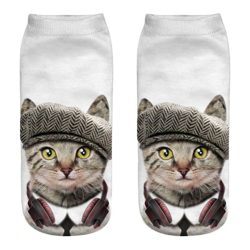 Носки женские до щиколотки, с 3D принтом, с изображением животных, Носки с рисунком котята