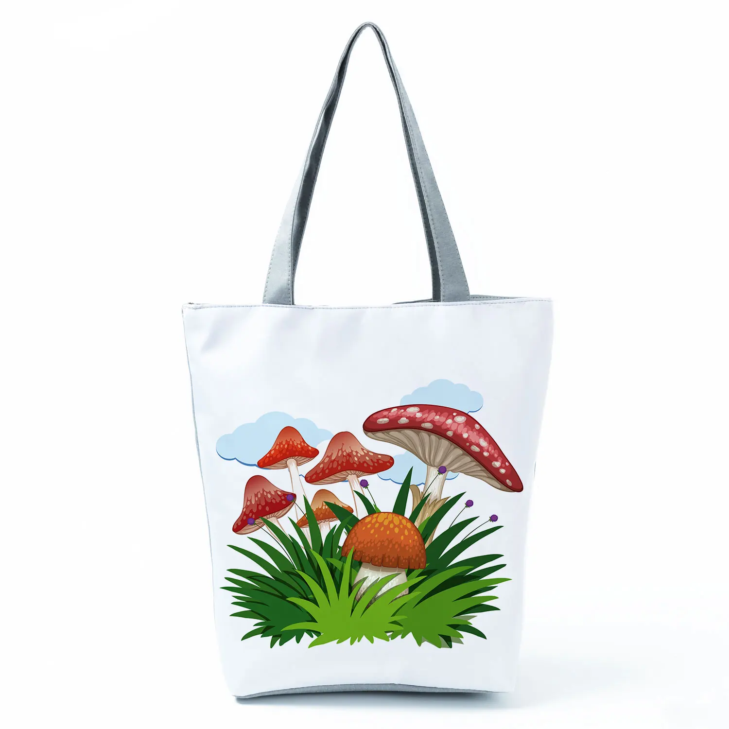 Сумка с принтом грибов, мультипликационная, высокая вместимость, многоразовая, хозяйственная сумка, растительная, женская сумка на плечо, модная сумка-тоут с индивидуальным узором