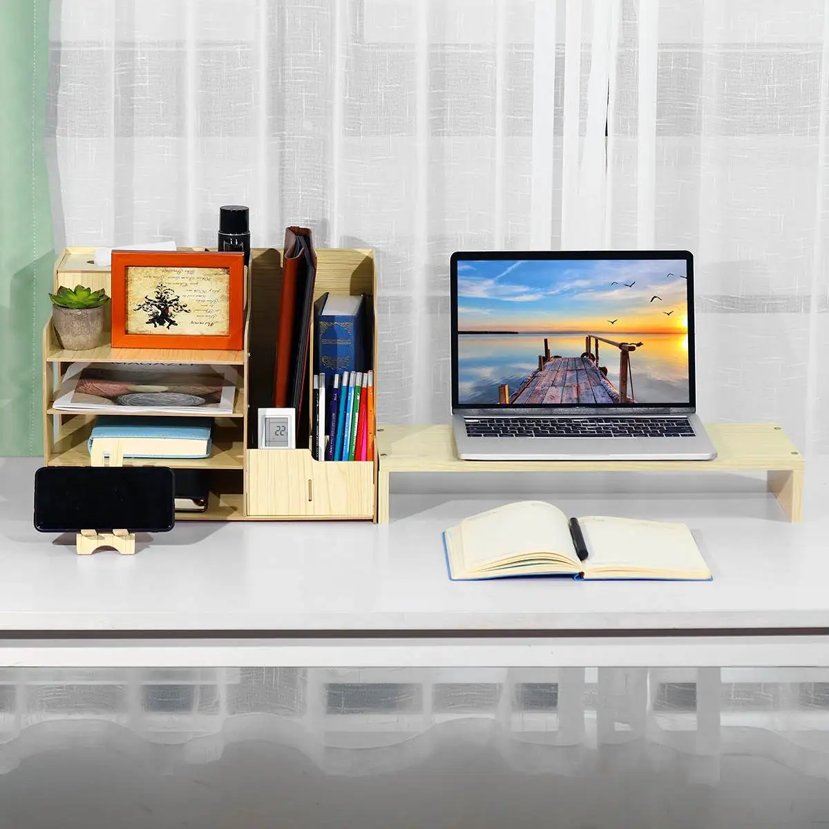 Деревянная настольная подставка для компьютера, стойка для монитора ноутбука, многофункциональный настольный держатель для экрана, принадлежности для стола