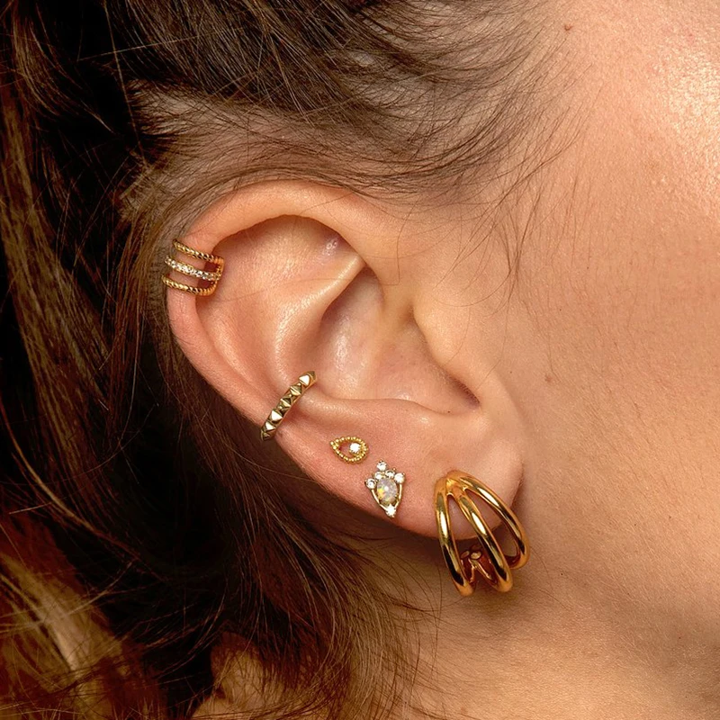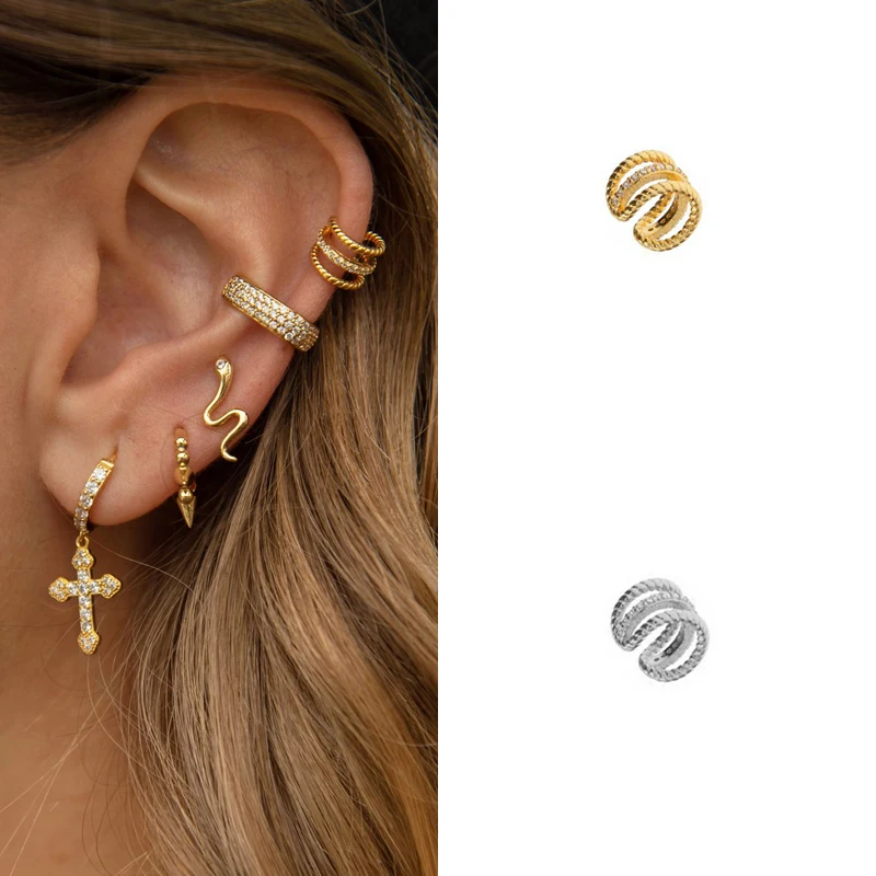 ISUEVA Уникальный 18K, покрыто золотом, кубический циркон панк клип CZ Кафф серьги, модное ювелирное изделие, бесплатная доставка
