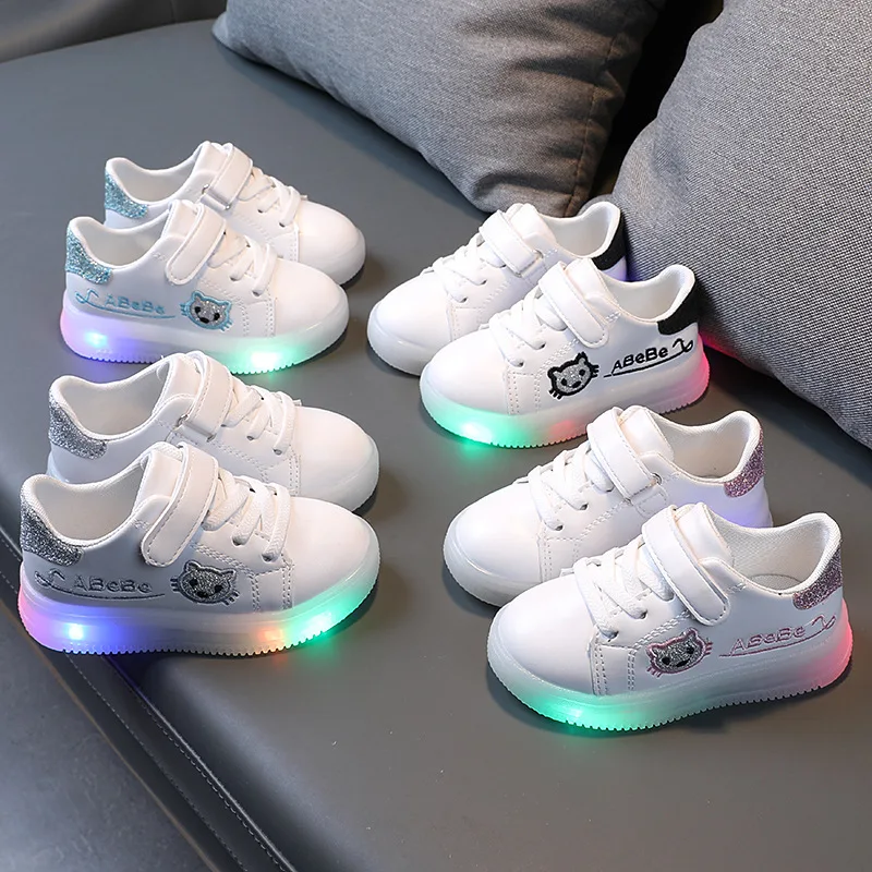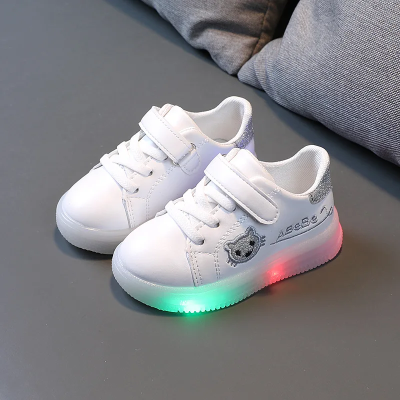 Новинка 2021, Всесезонная повседневная обувь для девочек, блестящая обувь на мягкой подошве, спортивная обувь для девочек со светодиодной подсветкой, Детские кроссовки на плоской подошве, E05172