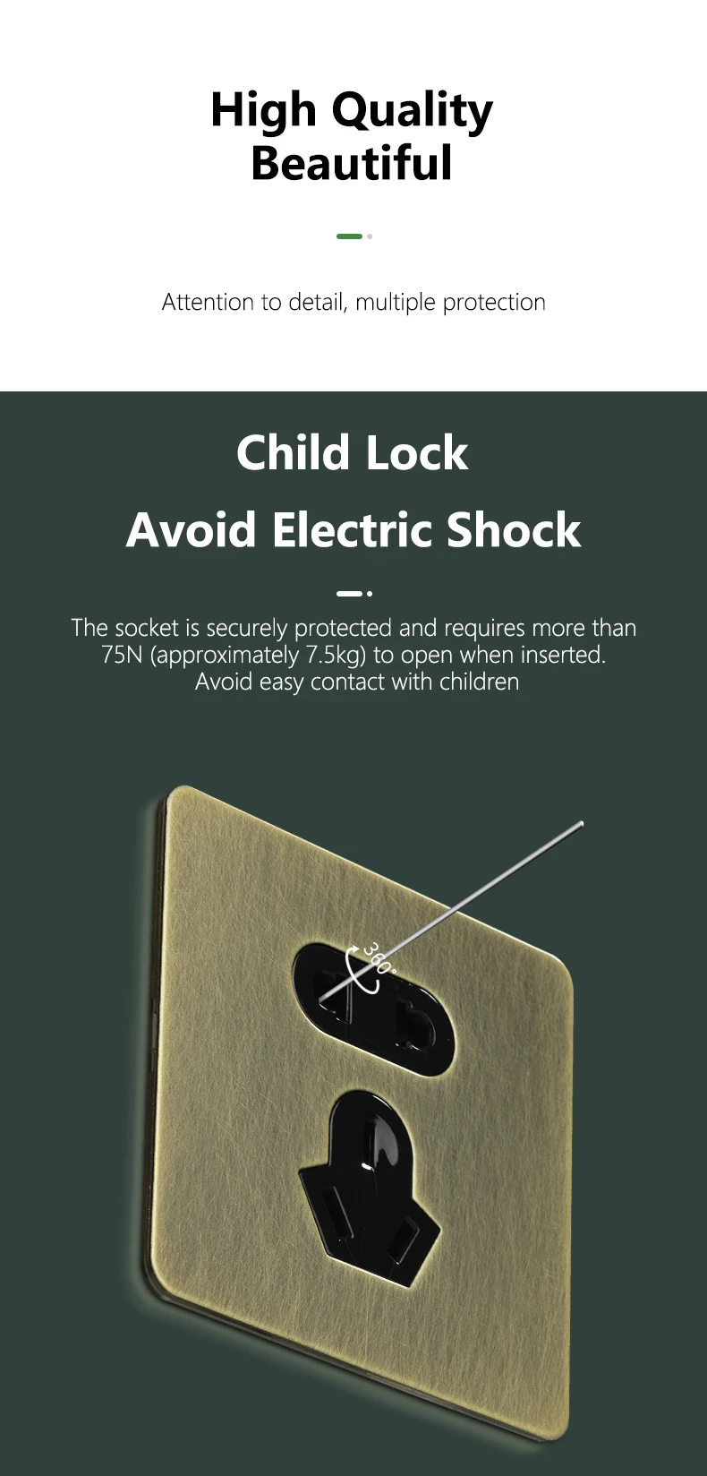 Материал: нержавеющая стальЦвет: Бронзовый случайный узорНоминальный ток: 10A/16AНоминальное напряжение: 110-250 ВРазмер: 86*86 ммУпаковка: 1 шт.