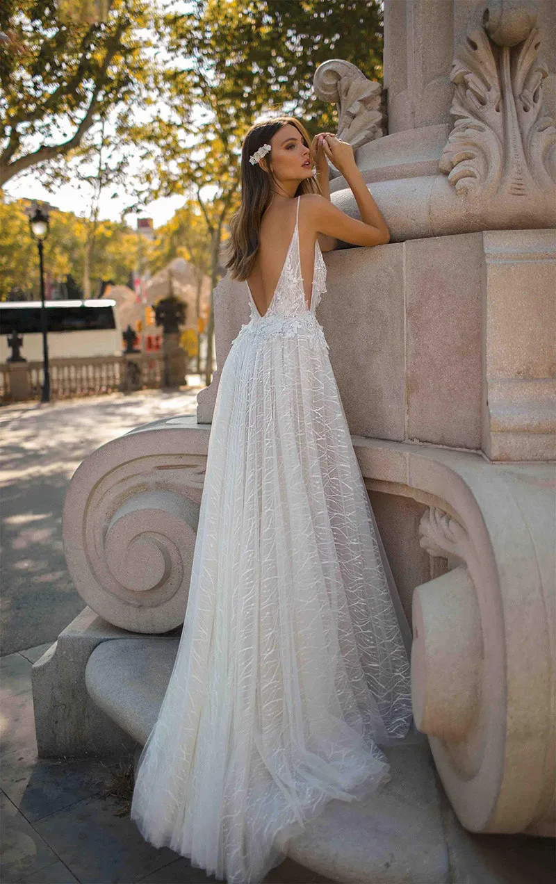 Пляжные свадебные платья, кружевные аппликации, сексуальное богемно...