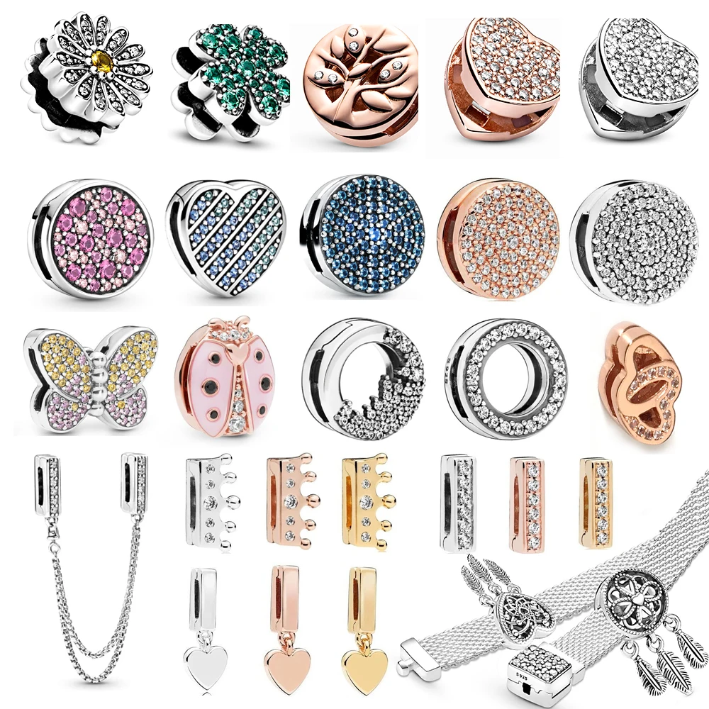S925 Серебряные Подвески 925 бусины Подходит для pandora рефлекторные Подвески Браслет DIY фиксированные зажимы подвески