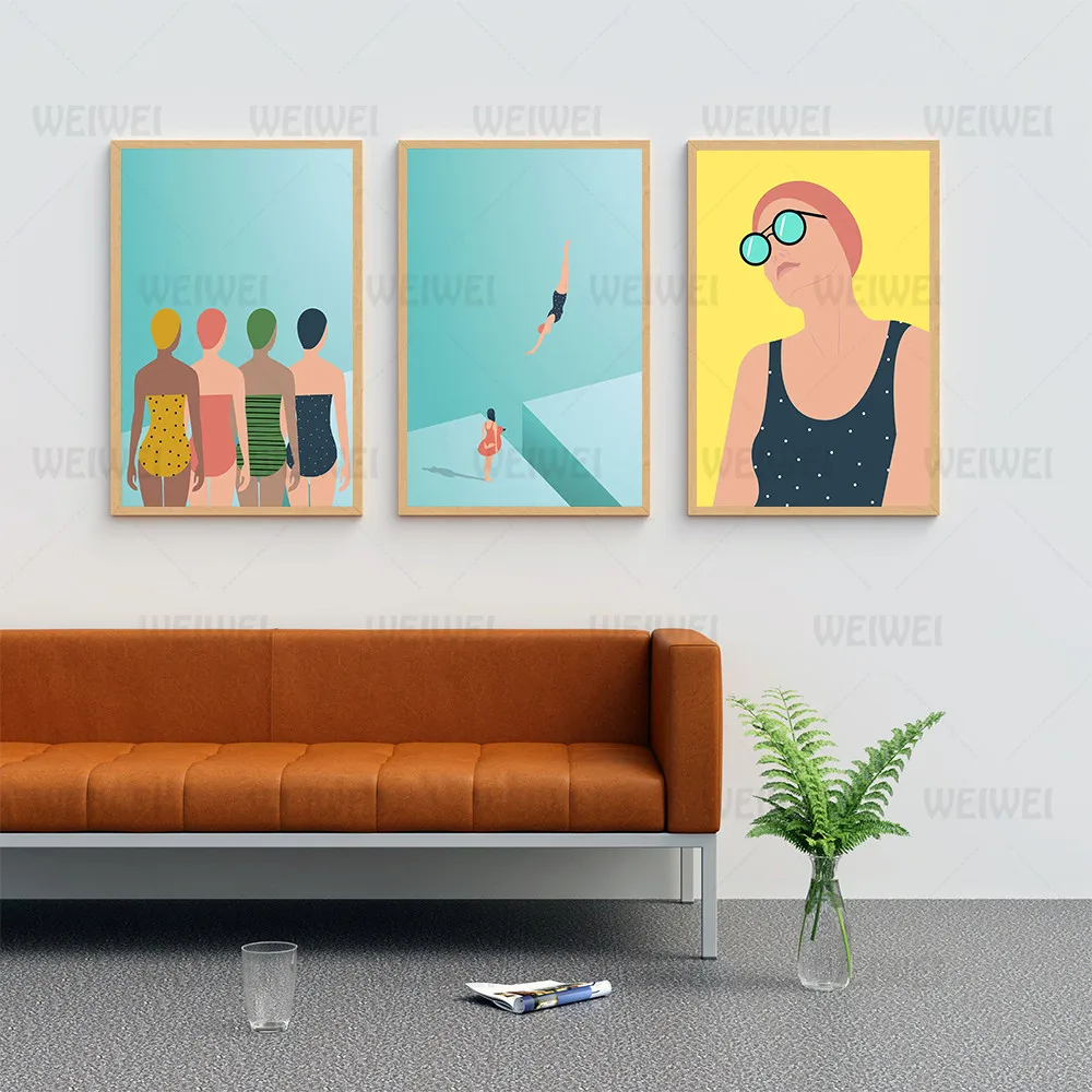 Скандинавский плакат для плавания переход в бассейн Картина на холсте настенные картины для гостиной современные декоративные принты на стену