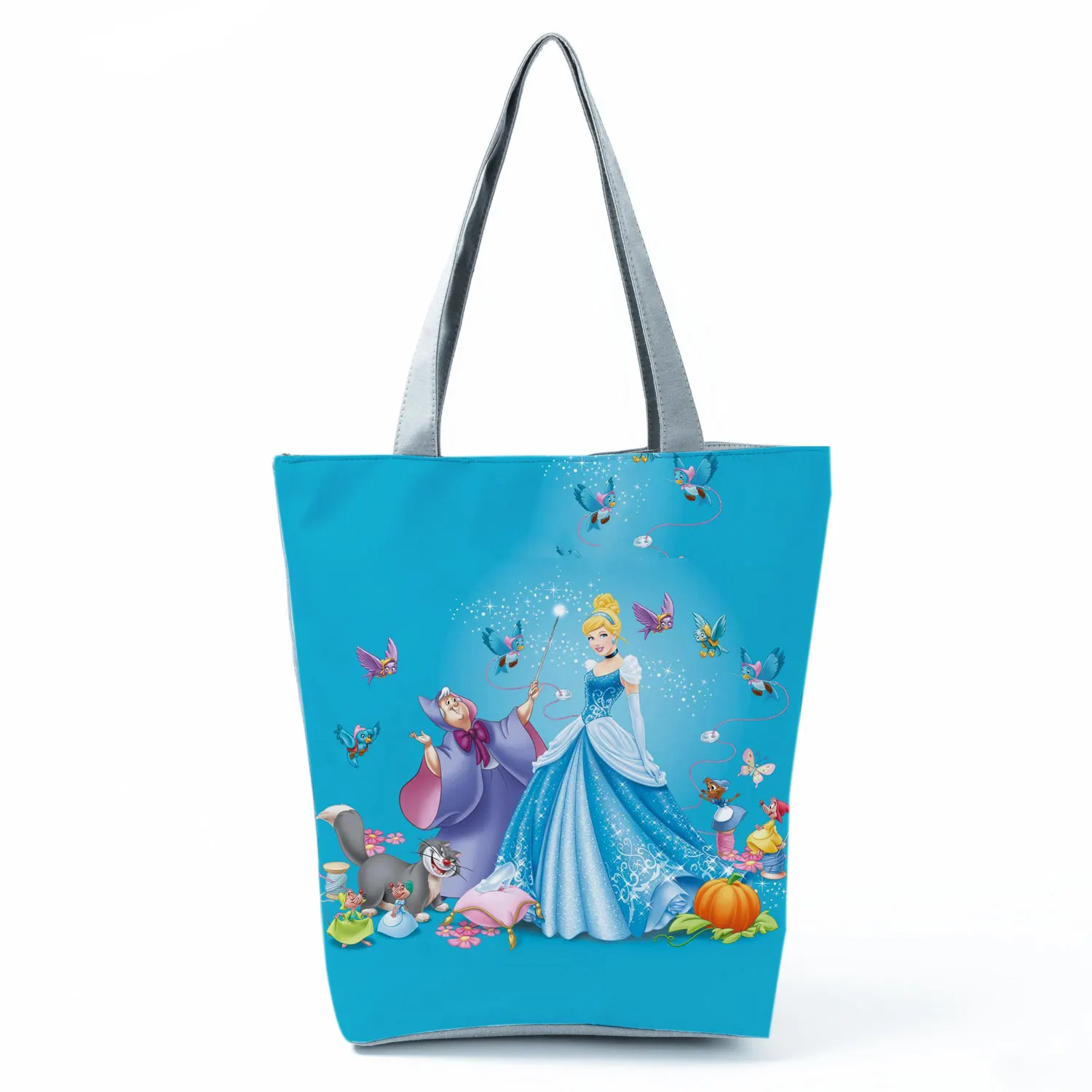 Сумка с принтом Золушки, эко-сумка Disney Princess, многоразовая женская сумка через плечо, модная вместительная складная сумка для покупок