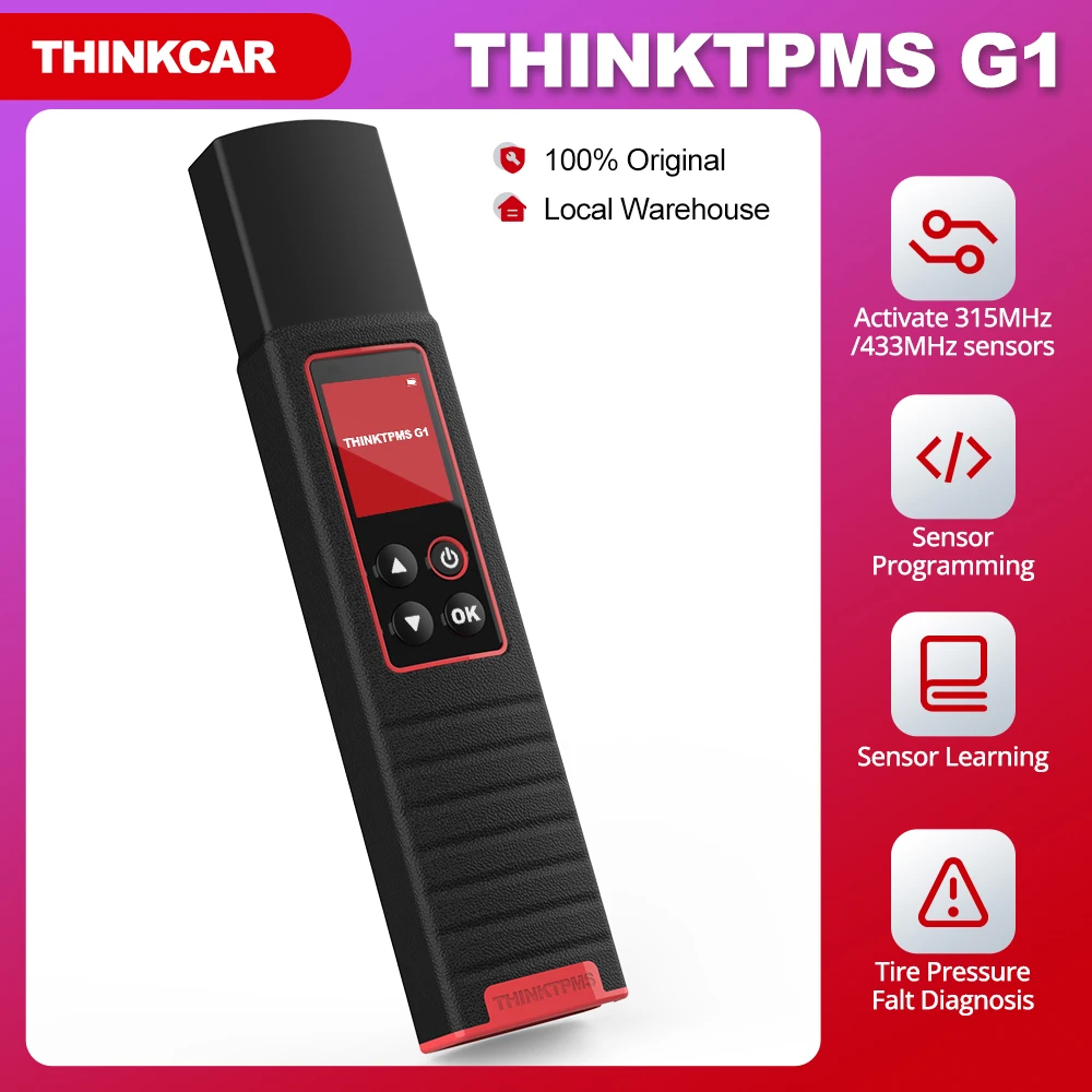 Thinktpms G1 может активировать все датчики давления в шинах 315 МГц/433 МГц, а также считывать, копировать, записывать идентификаторы датчиков и считывать данные о давлении в шинах (давление, температура, состояние батареи)