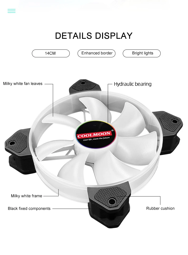 Вентилятор охлаждения 35EA COOLMOON Yuhuan, 140 мм, бесшумный, RGB ...