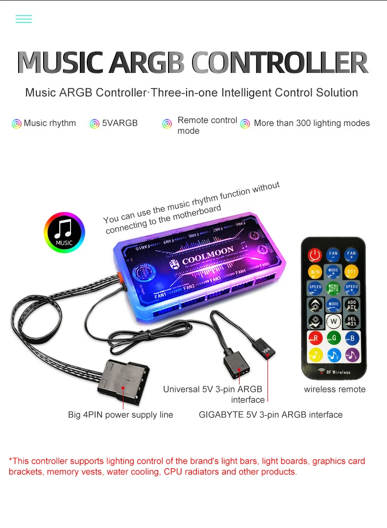 Кулер для чехла Coolmoon ARGB, 140 мм, 6 комплектов вентиляторов с ...