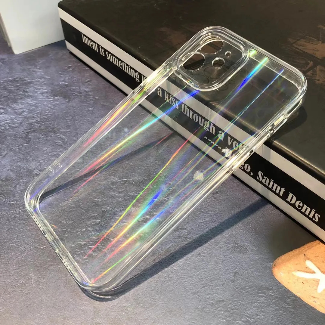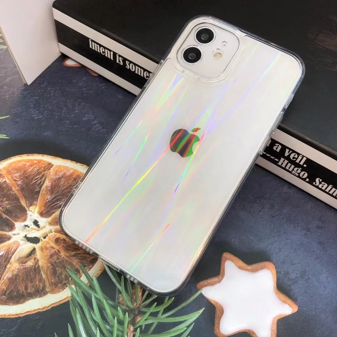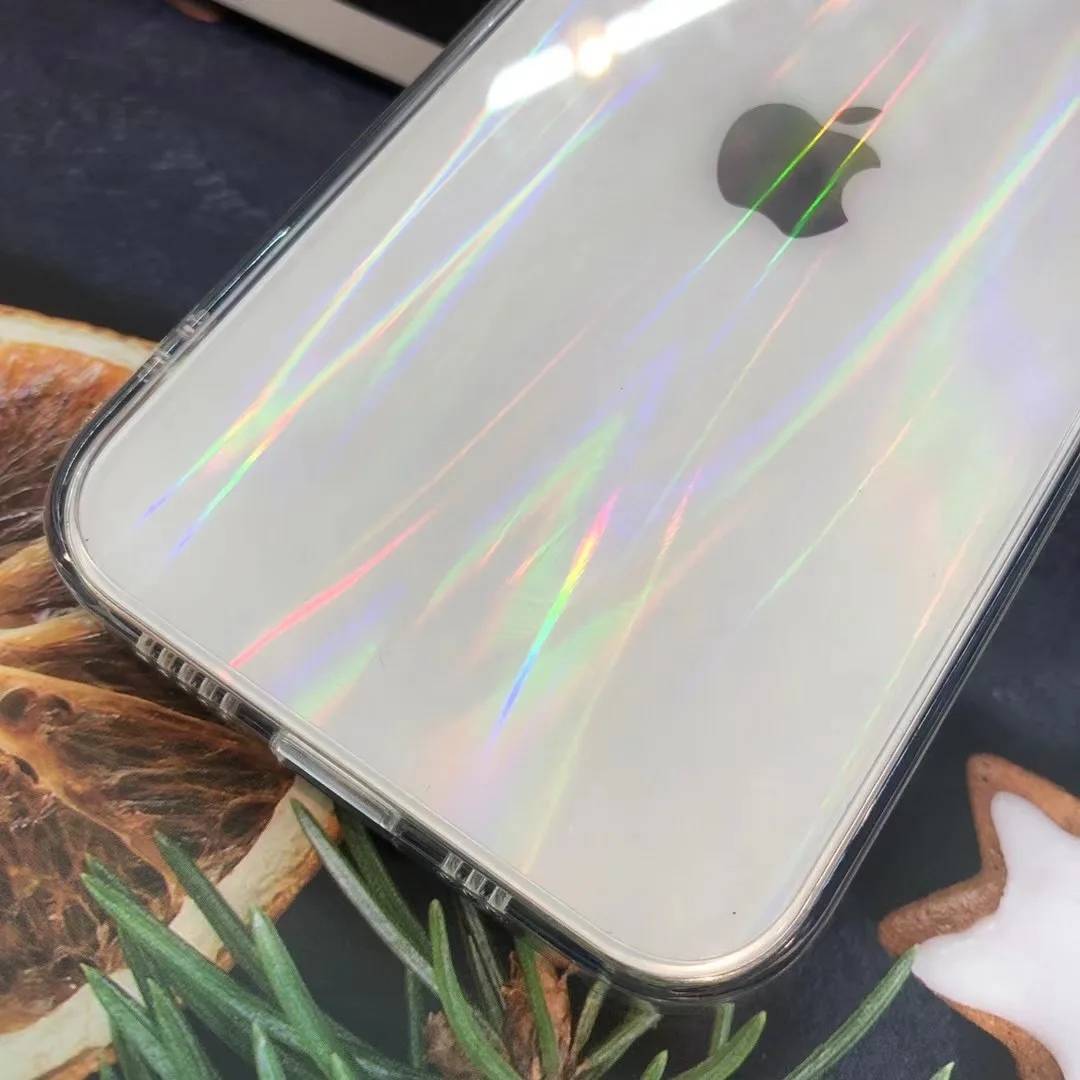 Голографический градиентный Радужный лазерный защитный чехол для камеры iPhone 1211ProMax XR XS 8 7 Plus прозрачный акриловый чехол