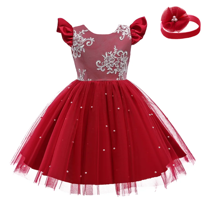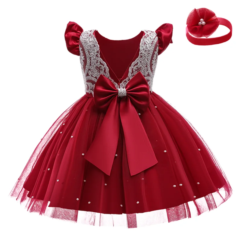 Детское платье с бантом красное платье кружевные вышитая юбка плать...