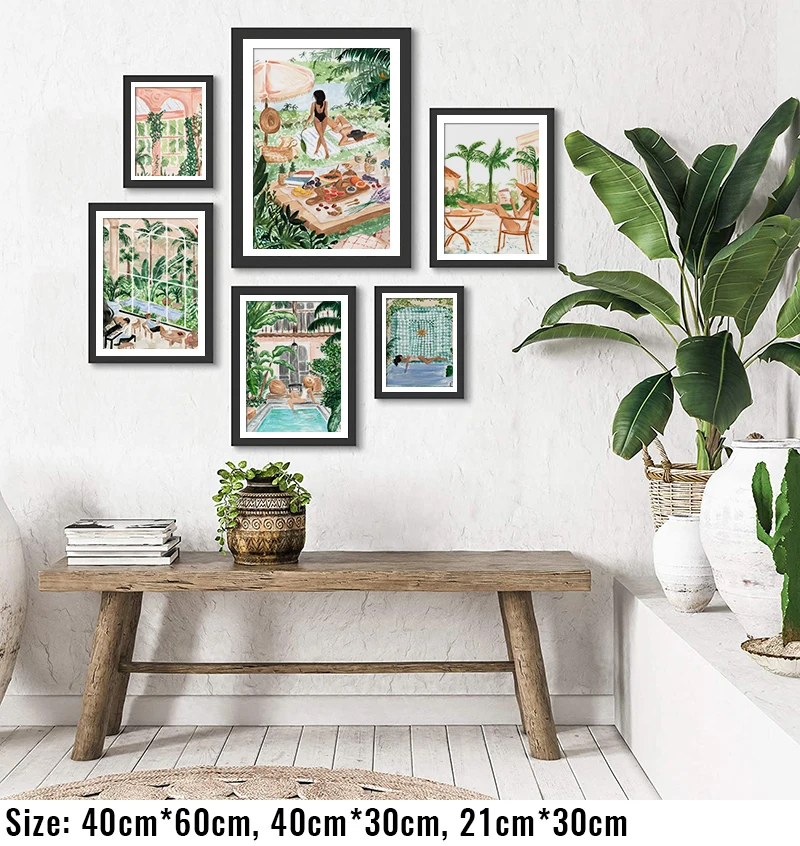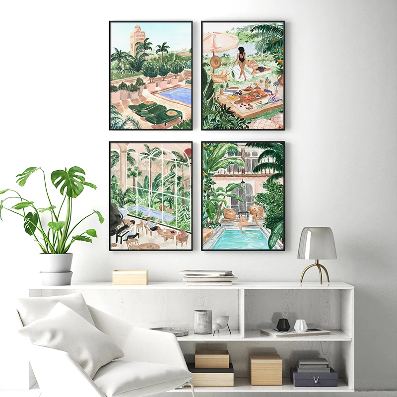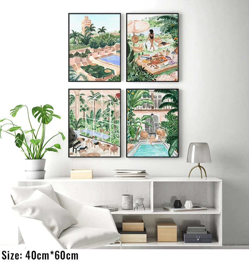 Картина на холсте с изображением пляжа, бассейна, марокканских троп...