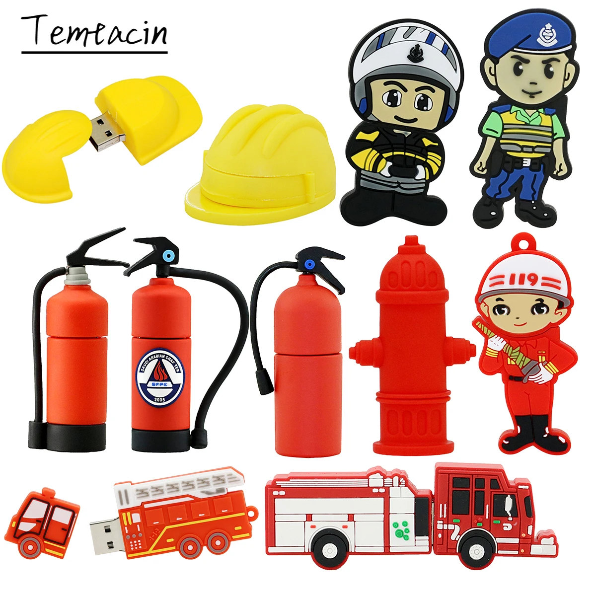Мультяшный пожарный огнетушитель Pendrive Fire Truck 128GB Pen Drive 256G USB Flash Drive 16GB 32GB 64GB Memories Cle USB Stick Disk