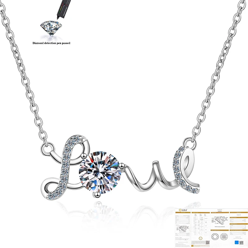 Муассанит ожерелье LOVE 1CT VVS лаборатории с алмазными подвесками, замшевые женские ботинки серебристого цвета 925 для женщин Свадебная вечеринка Подарок на годовщину, простые подвески