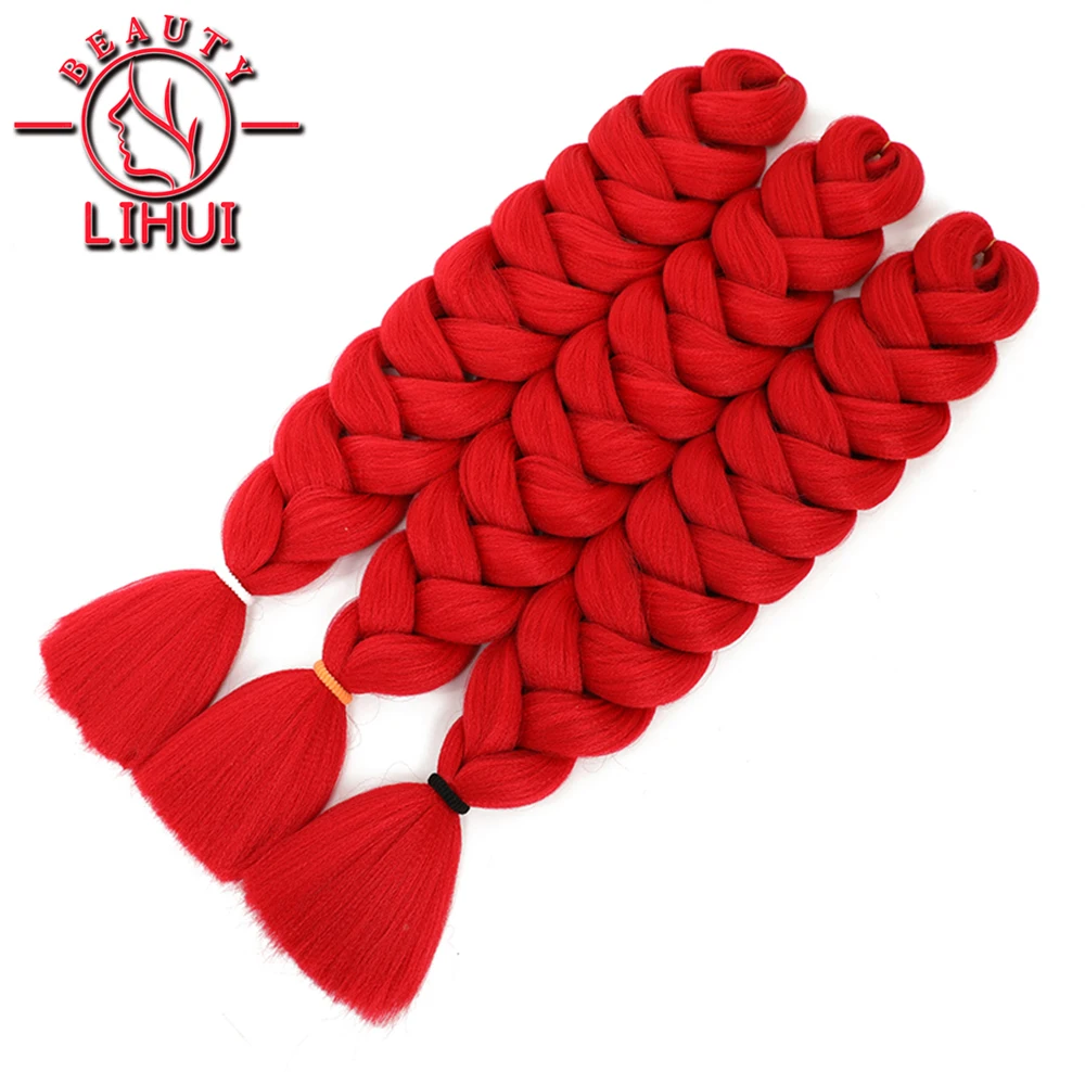 LIHU 82 дюйма 165 г красные крупные плетеные волосы предварительно вытянутые низкотемпературные волокна синтетические волосы для наращивания для женщин косы