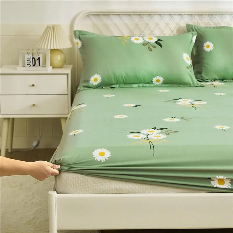 Новинка 2021, простыня, 1 шт., простыня для матраса с зеленым цветочным принтом, четыре угла, с эластичной лентой, простыни для кровати (без наволочки)