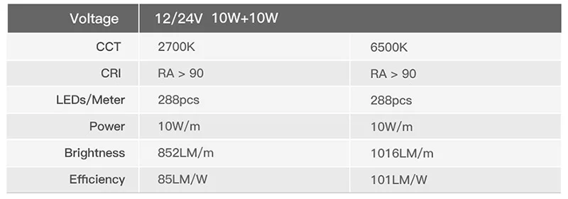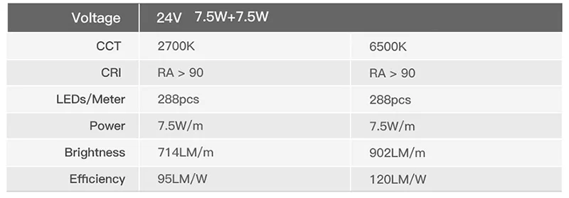 Переменная цветовая температура, от теплого белого (2700K) до холодного белого (6500K),Дополнительный контроллер CCT необходим для изменения цвета, Доступно в магазине