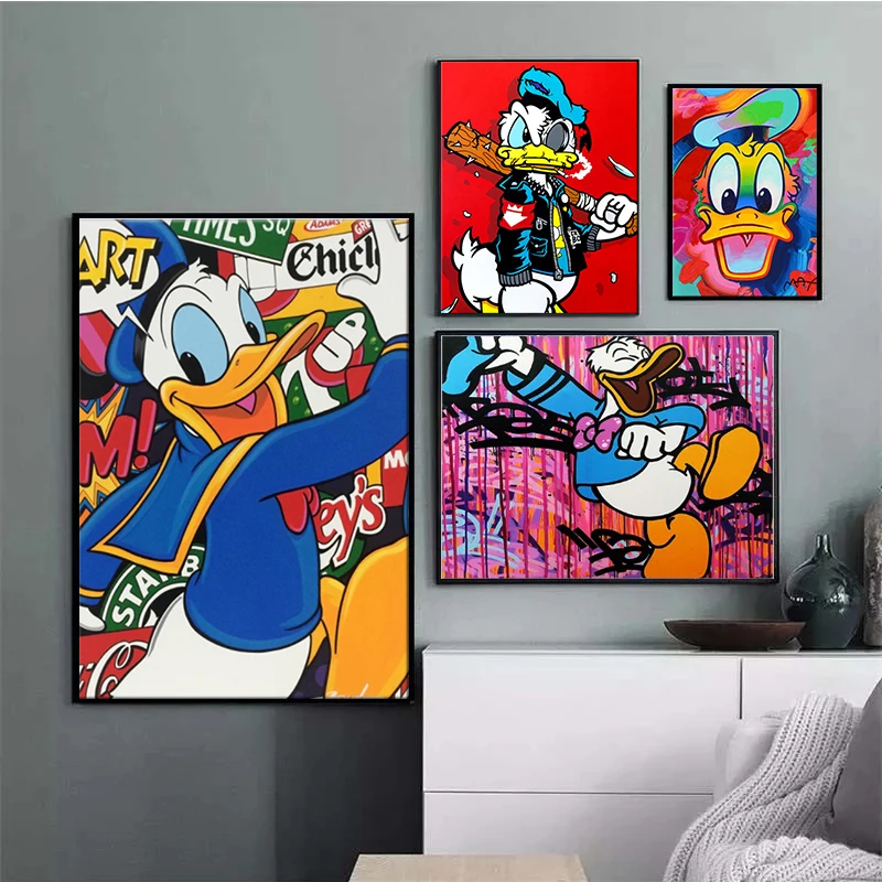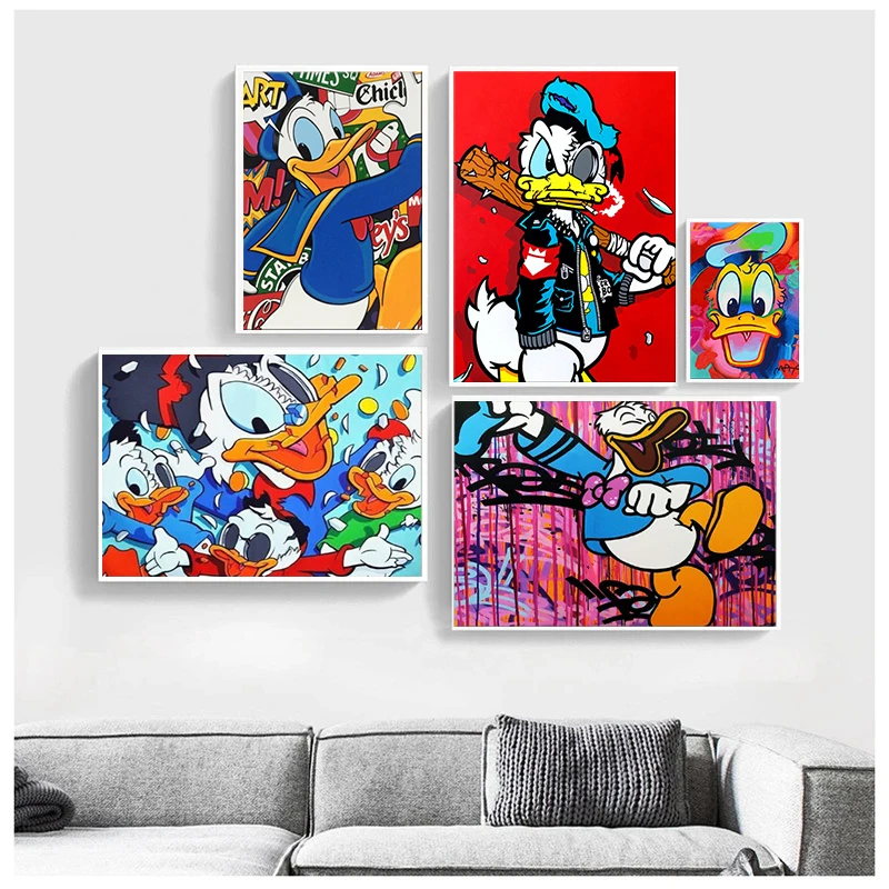 Цветные картины на холсте из мультфильма Disney, постеры с изображением граффити, Микки Мауса, Дональда, утки, настенные художественные картины для комнаты, домашний декор
