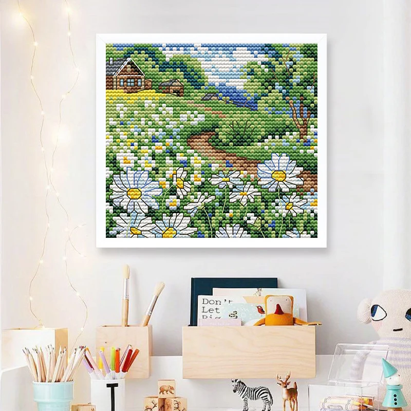 Набор для вышивки крестом, Европейский пейзаж, цветы на лугу, DMC 1...