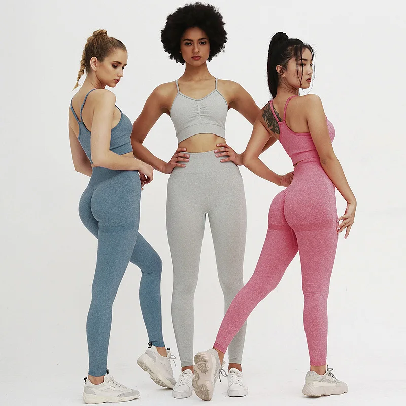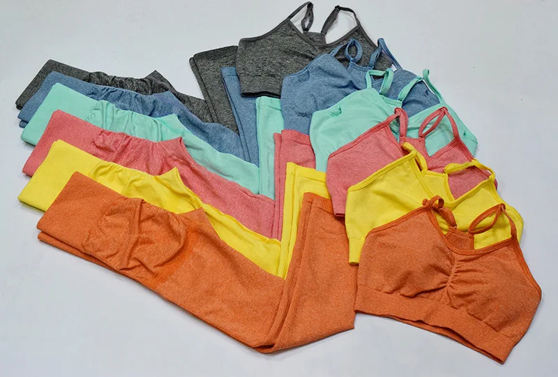Бесшовный комплект для йоги из 2 предметов, пикантный комплект с бюстгальтером с высокой талией, одежда для спортзала для женщин, женский комплект спортивной одежды, тренировочный костюм для фитнеса и спортзала, академический костюм