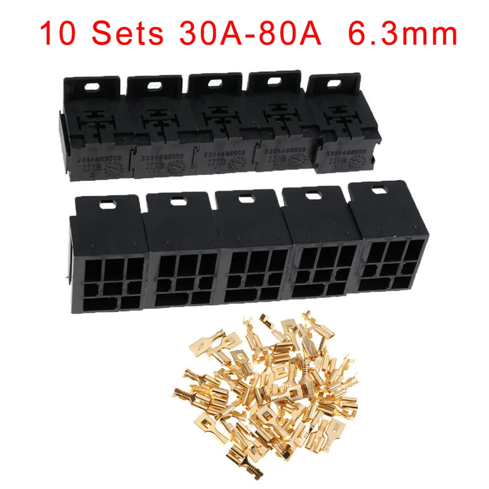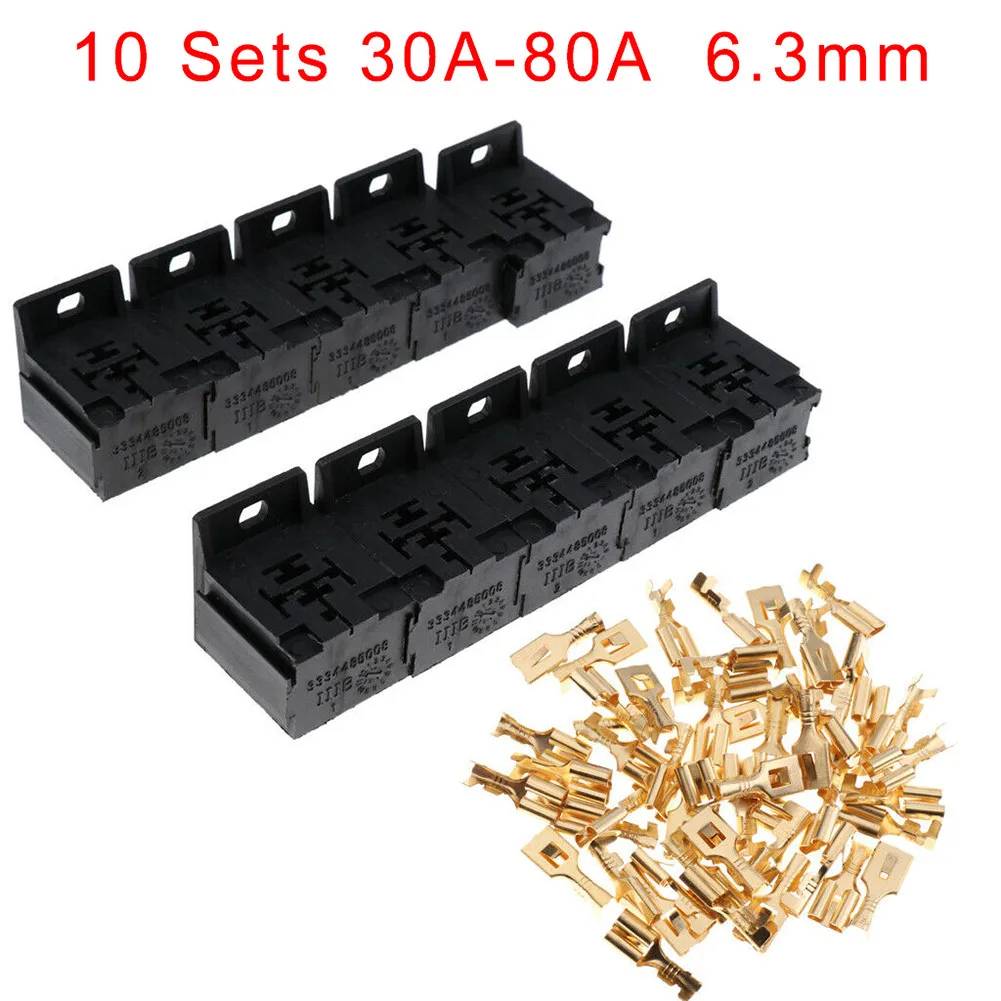 10 комплектов, релейная розетка 30A-80A, подставка-держатель с 5 контактами и 5 контактами, комплекты кронштейнов 6,3 мм, автомобильные товары 12 В24 В