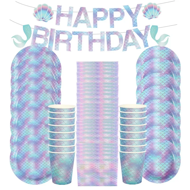 QIFUвечерние принадлежности для Русалочки, одноразовая посуда под морем, вечерние принадлежности для маленькой Русалочки на день рождения, вечерние украшения для детей