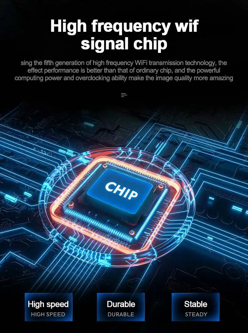 Благодаря высокочастотной технологии передачи Wi-Fi fifh производительность лучше, чем у обычных чипов, а мощная вычислительная мощность и разгон делают качество изображения более потрясающим