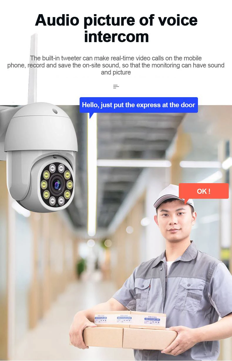 Встроенный твитер может совершать видеозвонки в реальном времени на мобильный телефон, записывать и сохранять звук на месте, так что мониторинг может иметь звук и изображение
