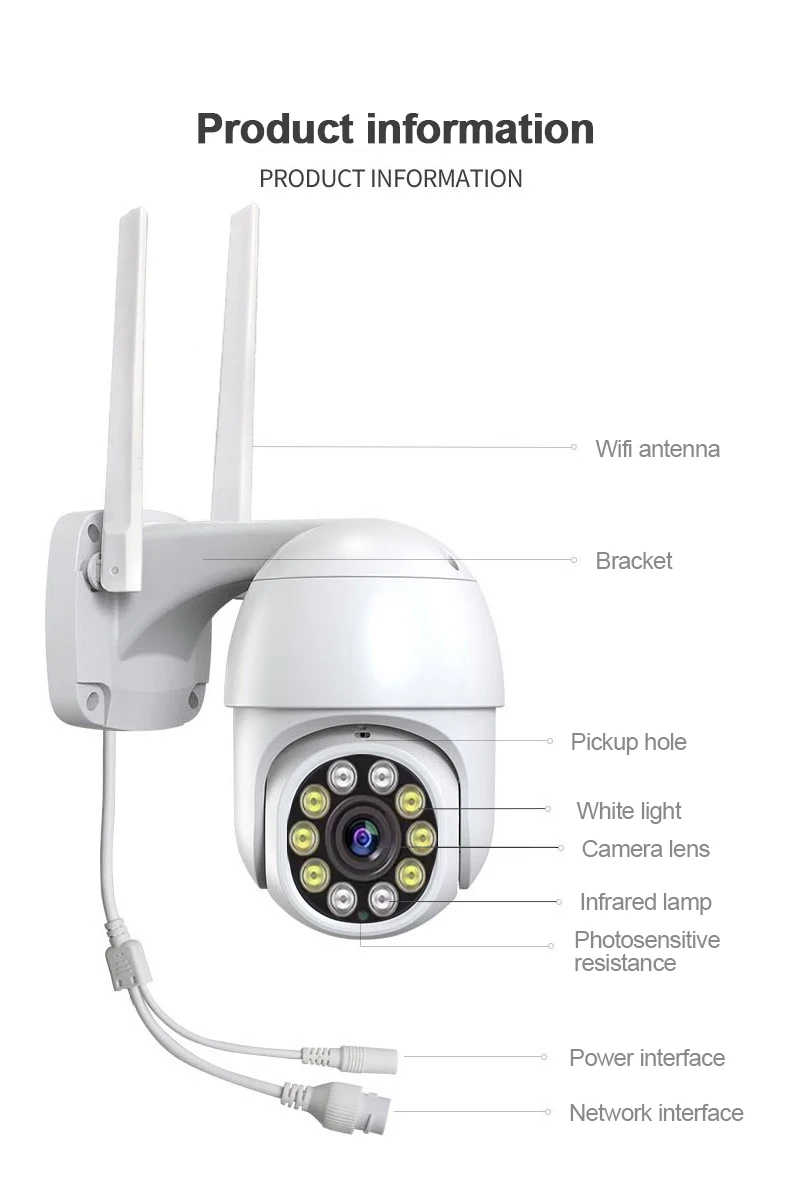 Разрешение 1,1080 P, высокое качество изображения2. Поддержка WiFi подключения3. Высокое качество двухстороннее аудио, с шумоподавлением4. Поддержка обнаружения движения, точное определение движущихся объектов5. Поддержка макс до 128 ГБ карта mirco-sd6. Поддержка панорамирования и наклона, панорама 355 ° + Наклон 90 °7. Поддержка мульти-платформы, Поддержка Android, iOS, планшета, ПК удаленного мониторинга anc просмотра видео8.IP66 водонепроницаемый для наружного использования