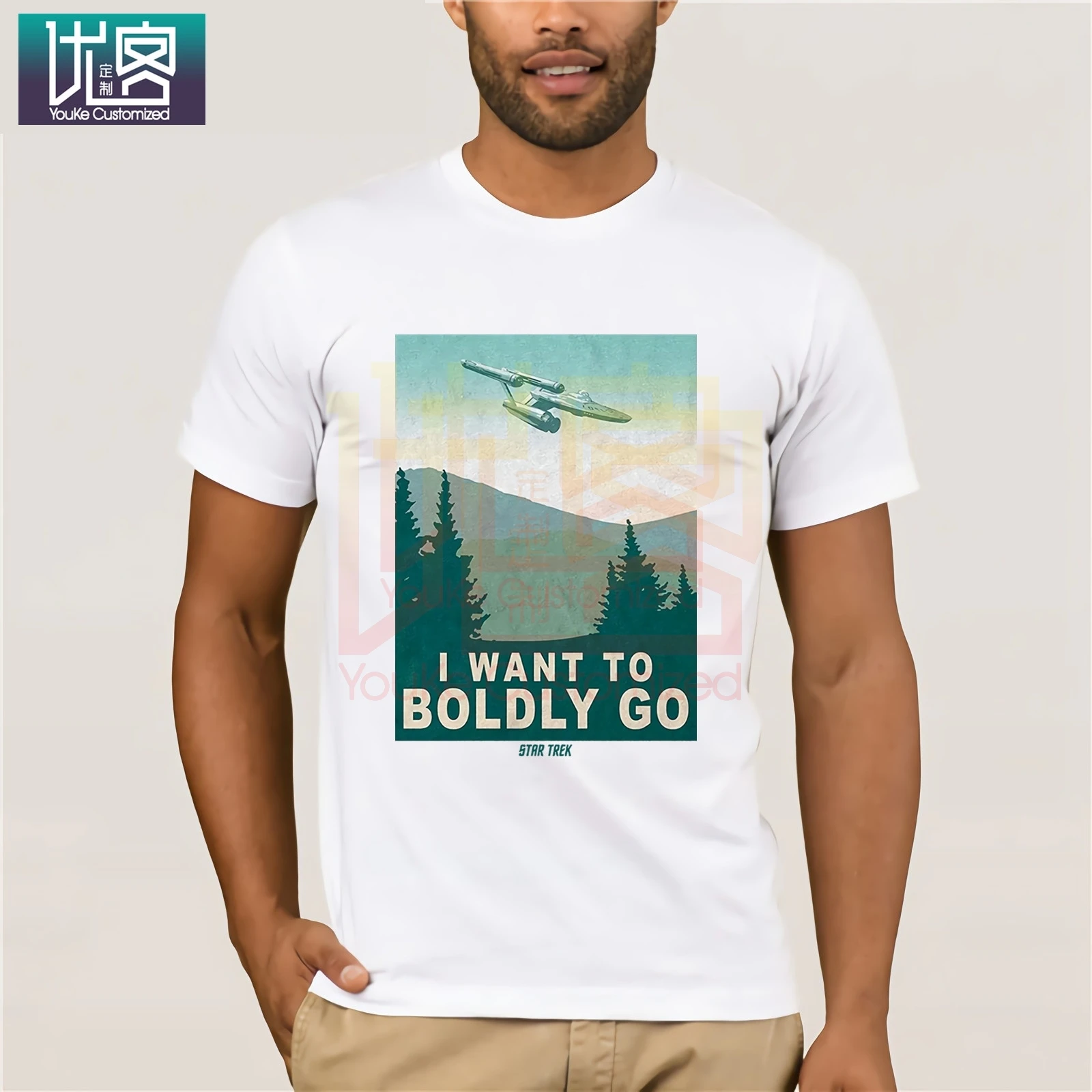 Постер для путешествий Star Trek Boldly Go, футболка, одежда, популярная футболка с круглым вырезом, футболки из 100% хлопка, футболка в подарок