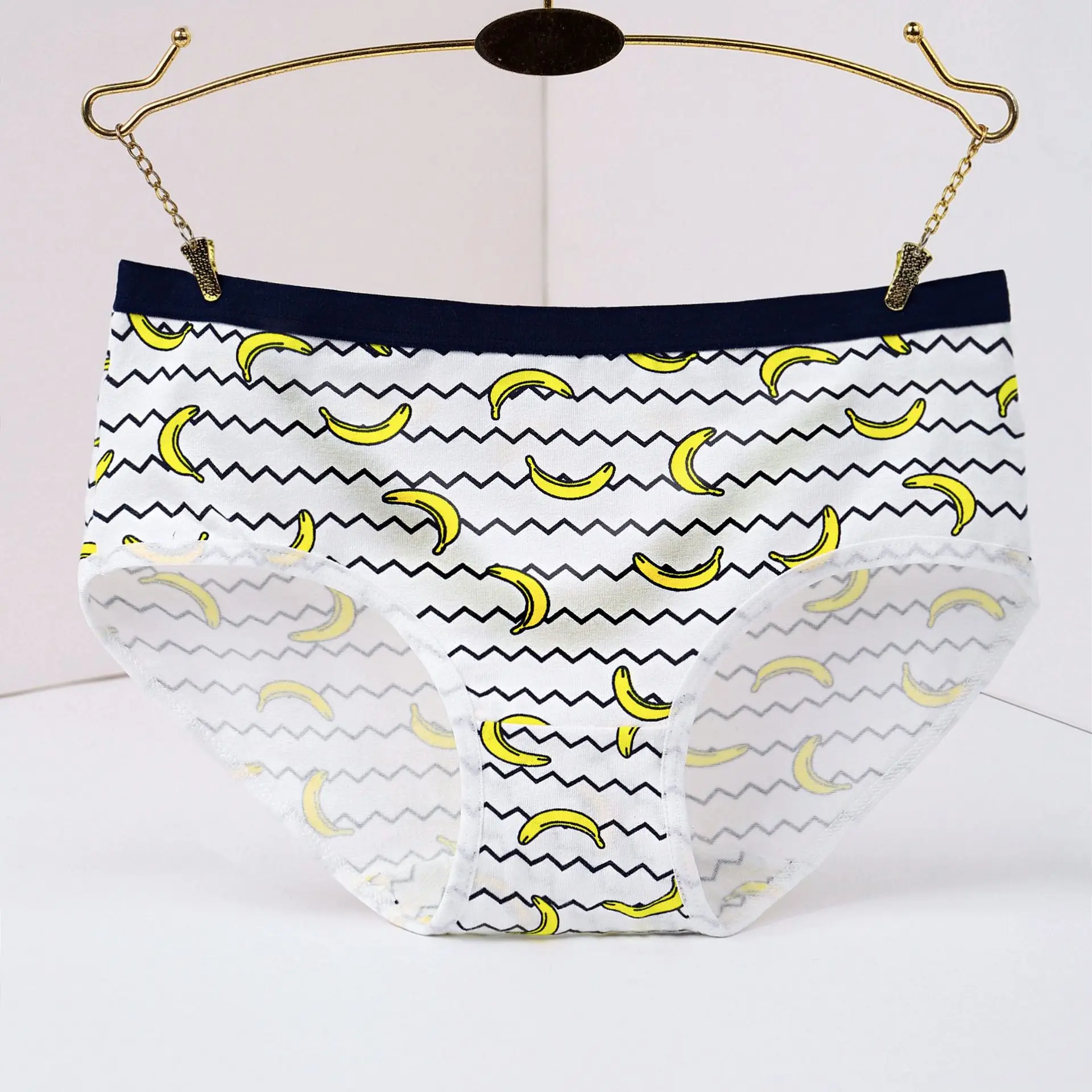 Простое черно-белое нижнее белье с рисунком фруктов для девочек, женское нижнее белье со средней талией, хлопковые бесшовные санитарные трусики с бананами, мягкие модные трусы