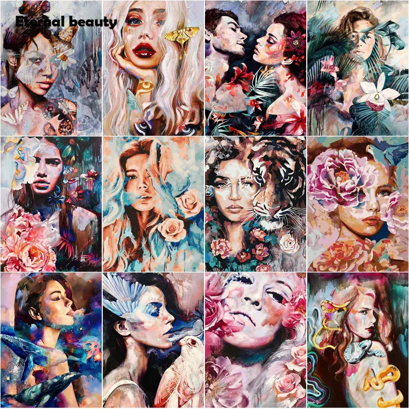 Алмазная живопись с красными губами абстрактная женщина 5D сделай сам полная выкладка квадратныекруглые стразы Набор для вышивки крестиком Мозаика домашний декор