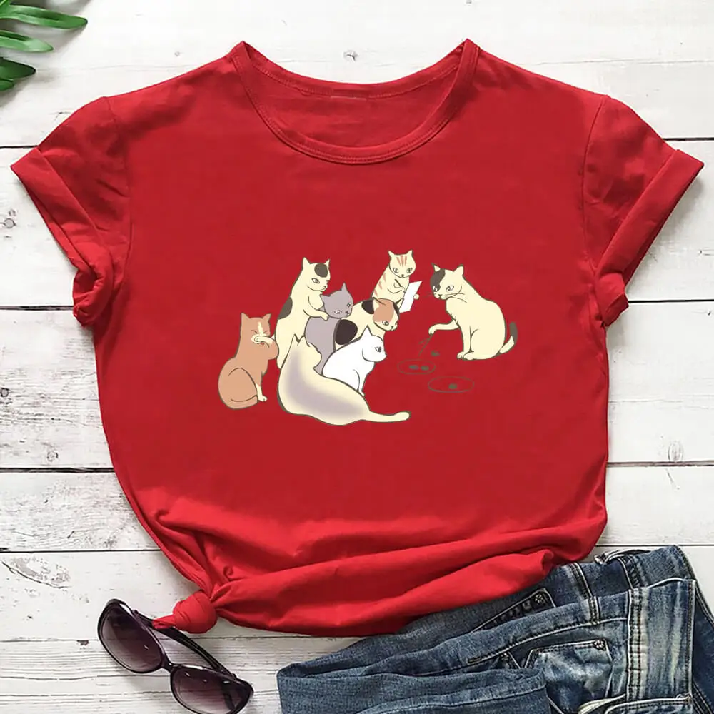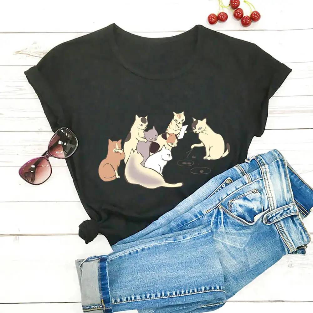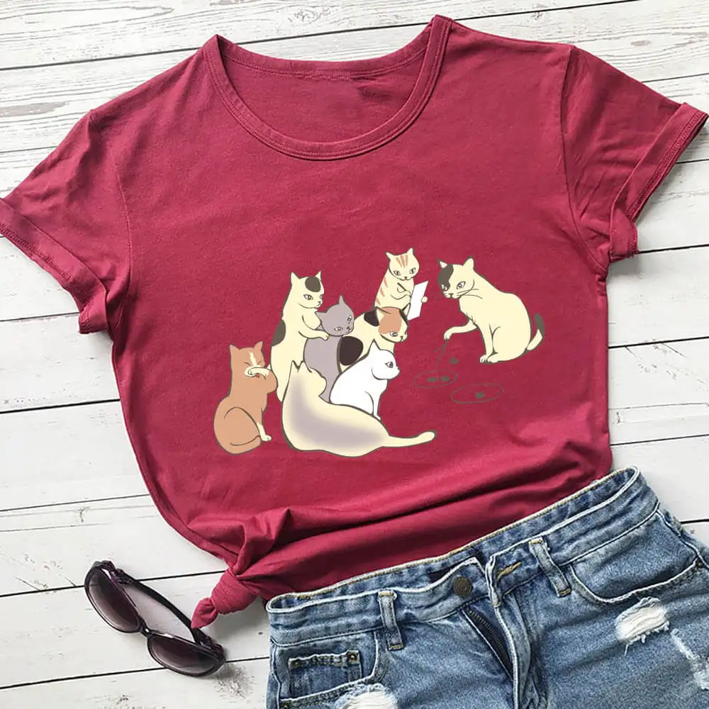 Футболка женская из 100% хлопка, с принтом кошек и надписью You Can...